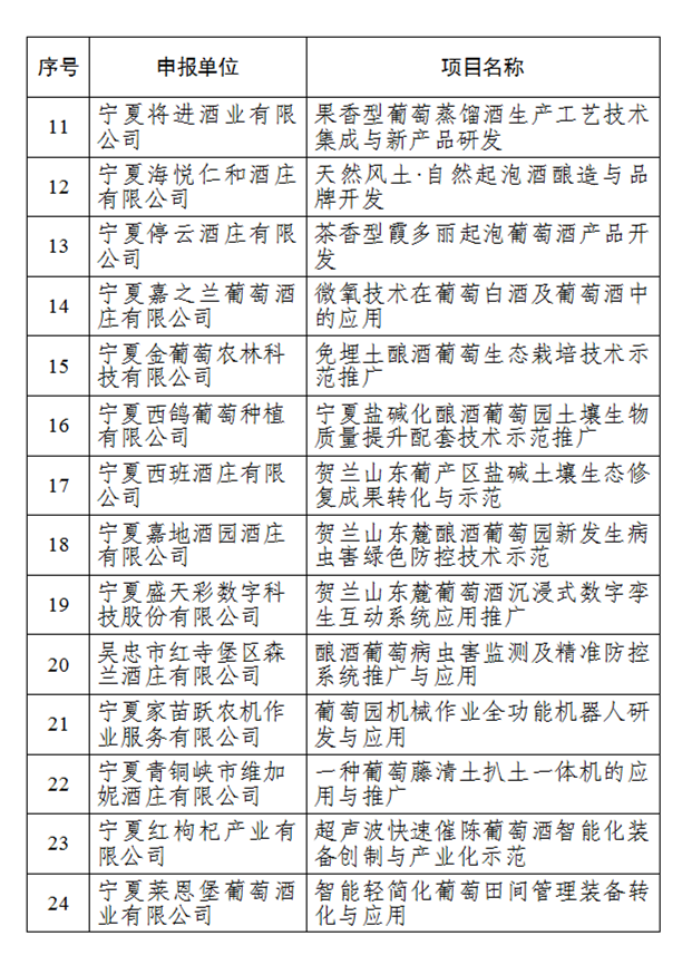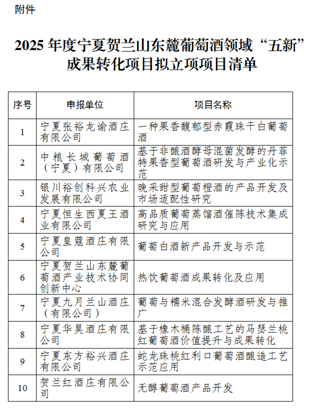 附件:2025年度宁夏贺兰山东麓葡萄酒领域“五新”成果转化项目拟立项项目清单