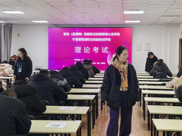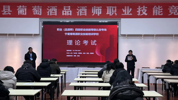 2025年12月30日,由银川市总工会、永宁县总工会联合主办,宁夏葡萄酒职业技能培训学校承办的葡萄酒品酒师职业技能等级认定(四级)考试,在闽宁镇宁夏葡萄酒职业技能培训学校顺利收官。本次考试聚焦宁夏葡萄酒行业专业人才队伍建设核心需求,以提升从业人员品鉴技能与理论素养为目标,进一步规范行业职业技能评价体系,为贺兰山东麓葡萄酒产业高质量发展注入人才活力。