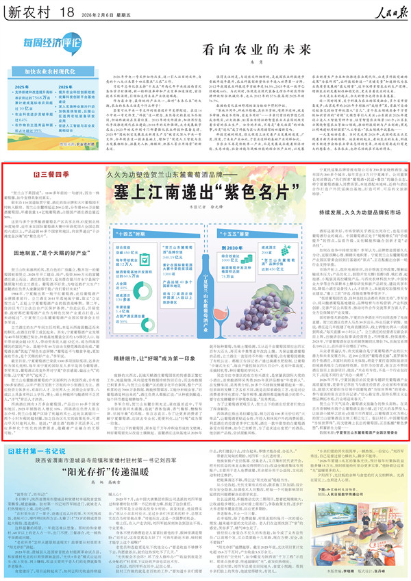 西鸽酒庄拥有3万多亩葡萄园,产品出口10多个国家和地区,2025年销售收入增长10%。西鸽酒庄负责人张言志介绍,贺兰山东麓产区除了优越的风土,还处在离银川一两个小时车程的辐射圈,加之自治区扎实的政策托举,可谓占尽天时地利人和。他说:“‘酒庄酒’的路子灵活多元,对应多样化个性化的消费需求,蕴藏着产业融合的无限可能。”