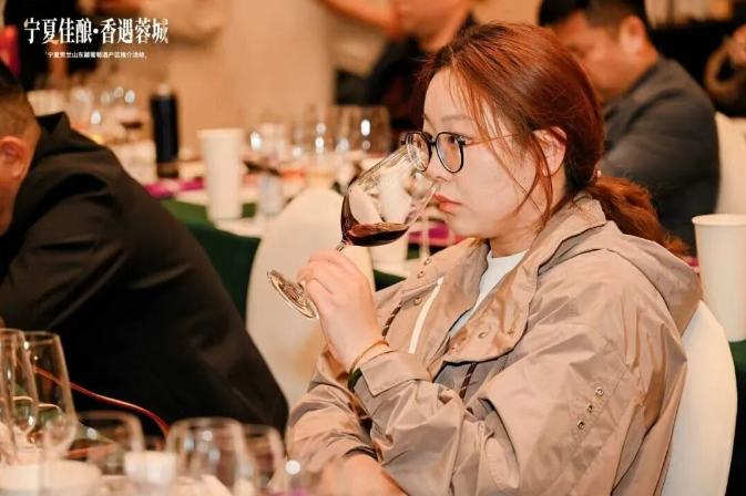 张旋老师带领现场来宾品鉴了银川产区多款代表性混酿酒款,深入解读了银川风土的独特魅力与混酿工艺的精髓。活动现场座无虚席,互动频繁。多位客商对银川产区的混酿品质给予高度评价,并表达了进一步合作的意向。