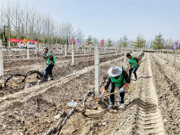 活动现场,嘉宾们共同为“第一架葡萄藤”动土,随着一声清脆的锣响,“鸣锣开藤”啦!大家撸起袖子,挥锹动土,把沉睡了一整个冬天的葡萄藤从土里“叫醒”。现场还办起了展藤劳动技能竞赛,比谁挖得又快又好,农艺师在一旁讲解技术要点。更有意思的是,嘉宾们还能为自己亲手展藤的葡萄树挂牌认养,记录下这“人藤互动”的专属瞬间。