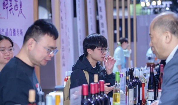 展区以“一粒种子、一缕酒香、一方乐土”为叙事脉络,完整展现了从优质风土到特色产品、从产业集聚到康养生活的产业价值链条。在“天赋西夏·酿就东方康养佳韵”板块,着重介绍了贺兰山东麓北纬38°黄金产区的独特生态,展示了西夏区作为核心产区所拥有的26家酒庄、4.66万亩种植规模及累计1800余项国际奖项的雄厚产业基础。现场展出的志辉源石“贺1895赤霞珠干红”等代表性获奖酒款,彰显了“东方佳酿”的品质高度。