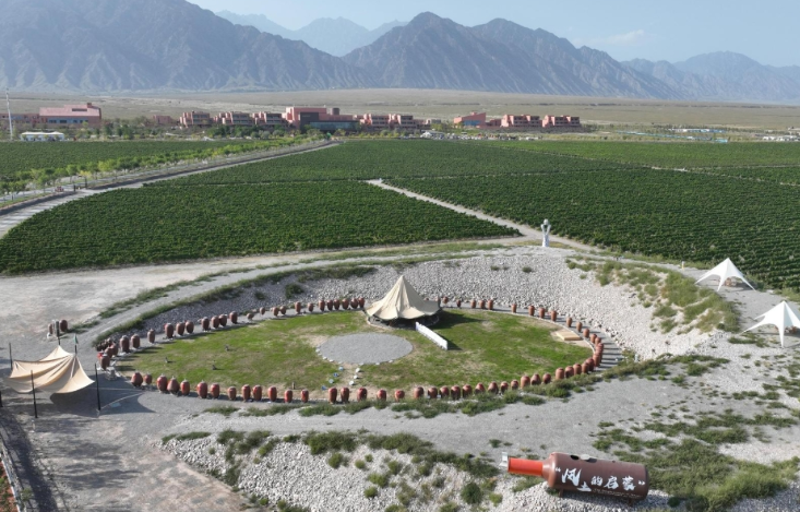 位于贺兰山脚下的宁夏图兰朵葡萄酒小镇(9月10日摄)。宁夏贺兰山东麓葡萄酒产区构建“种植—酿造—文旅”三产融合模式,将旅游流量转化为品牌认知,推动酒旅深度融合。记者 王婧雅 摄