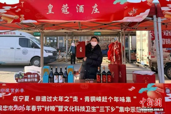 2月4日,青铜峡一酒庄在当地年货大集上“摆摊卖酒”。(青铜峡市官方供图)