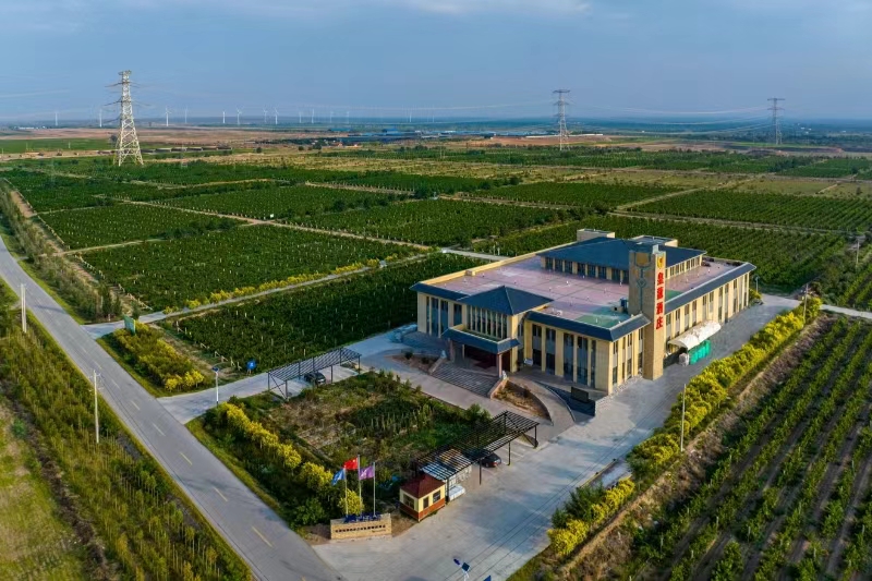 俯瞰吴忠市,成片的葡萄园在贺兰山东麓和罗山两侧形成绿色生态屏障,从昔日“干沙滩”到今日“金沙滩”,真正践行了绿水青山就是金山银山。如今,吴忠市建成酒庄45家,葡萄酒产业年带动周边1.66万农户务工增收3.35亿元。(宁夏日报记者 铁志平 见习记者 蔡莞郁)