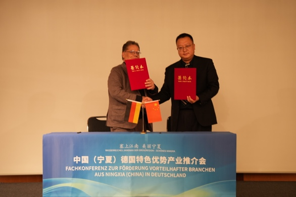 本次推介会成果丰硕,德国文化经济促进会分别与宁夏人民对外友好协会、宁夏贺兰山东麓葡萄酒产业园区管委会签署《建立友好合作关系备忘录》,标志着双方在产业交流、资源对接等领域正式建立合作机制,宁夏亿众酒庄与德国拍卖行布兰克公司签订了在法兰克福及全球地区的推广销售协议,此次推介会为宁夏贺兰山东麓葡萄酒进入德国市场搭建了重要平台。