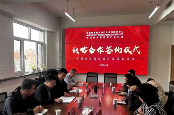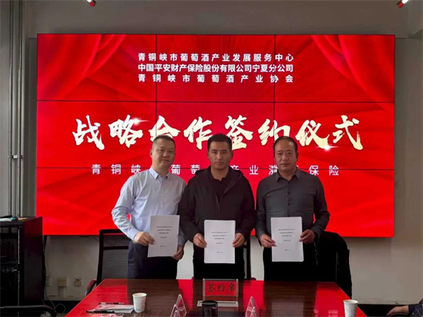 2025年12月9日,青铜峡市葡萄酒产业发展服务中心、平安财险青铜峡支公司与青铜峡市葡萄酒产业协会成功举行战略合作签约仪式,共同签署《葡萄酒产业溯源保险合作协议》。该项目作为全区首个产区级葡萄酒溯源保险项目,构建起“政府引导、保险护航、主体参与、消费信任”的产业发展新模式,积极探索区域特色产业升级新路径。