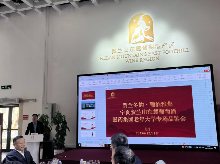 2025年12月15日下午,在全国农业展览馆内,一场以“贺兰冬韵·葡酒雅集”为主题的宁夏贺兰山东麓葡萄酒及文化旅游消费季品鉴会成功举办。本次活动由宁夏贺兰山东麓葡萄酒产业园区管委会与宁夏贺兰山东麓葡萄与葡萄酒联合会和中国老年大学协会主办,吸引了约50位国药集团老年大学学员代表参与,共同品味来自贺兰山下的醇香佳酿,感受中国葡萄酒的独特魅力。