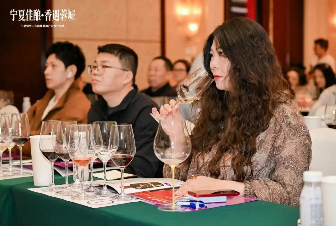 张旋老师带领现场来宾品鉴了银川产区多款代表性混酿酒款,深入解读了银川风土的独特魅力与混酿工艺的精髓。活动现场座无虚席,互动频繁。多位客商对银川产区的混酿品质给予高度评价,并表达了进一步合作的意向。
